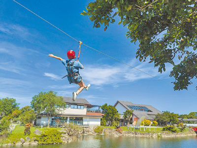 拍照,是旅程中不可或缺的一環。園區提供浴衣與動漫Cosplay服飾體驗,旅人可換裝漫步日式庭園取景,留下充滿故事感的旅行畫面;喜歡動態體驗的旅客,還能搭乘滑索從空中俯瞰湖景與園區全貌,為旅程增添一點刺激與新鮮感。親子或好友同行,也可透過彩繪DIY,把旅行回憶化為專屬紀念。