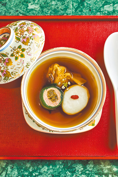 同樣在湯品上有著墨的還有頂級餐廳aMaze心宴,冬季菜單《謝》宴,湯品則有香料與鴨香緩緩層疊的「薑母鴨魚丸」,以濃厚鴨湯作為基底,承載當歸魚丸與酸菜鴨胸卷,薑母鴨多重奏像冬日暖陽般暖和身心。