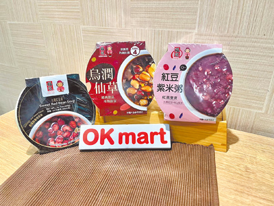 有感於紅色象徵吉祥與喜氣,OKmart推薦紅色甜湯系列,像是「福記─紅豆紫米粥」,號稱滋補養氣、口感綿密微甜;「福記─烏潤仙草」以濃郁的仙草香氣搭多樣配料,堪稱家宴的暖胃好選擇。