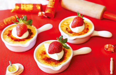 「法式烤布蕾」可以同時品嘗到滑順的蛋奶布丁和脆硬焦糖的對比口感,深受大人小孩喜愛。董事長吳宗恩端出這款法式經典甜品,「主要考慮到店內的烤布蕾是熱銷品項,很多小朋友喜愛,我分享這道人氣甜點的作法,讓親子可以在寒假期間親手製作美味的點心。」