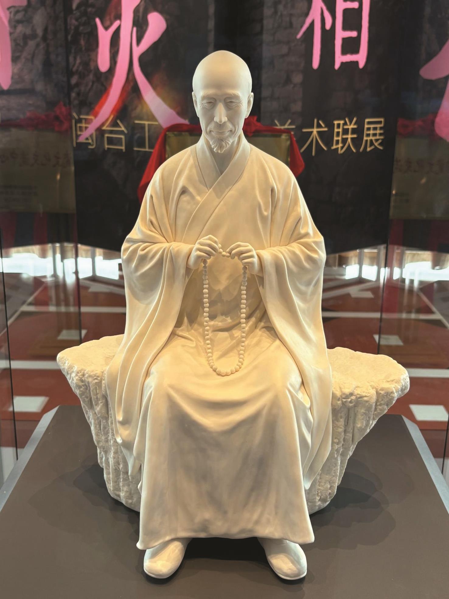 同步開幕的「薪火相傳─閩臺工藝美術聯展」依託德臺陶瓷文化交流中心平臺,計畫全年邀請60位兩岸工藝美術大師參與。首期展覽匯聚10位名家力作,福建省陶瓷大師曾素妹帶來其精雕細琢的媽祖瓷雕作品,以「白如凝脂、溫潤如玉」的德化白瓷詮釋傳統信仰與藝術美學的融合;臺灣籍工藝大師李詩維帶來融合兩岸工藝理念的作品《饗宴》與《瓷愛歡樂》等等,成為兩岸工藝交流互鑒的生動見證。
