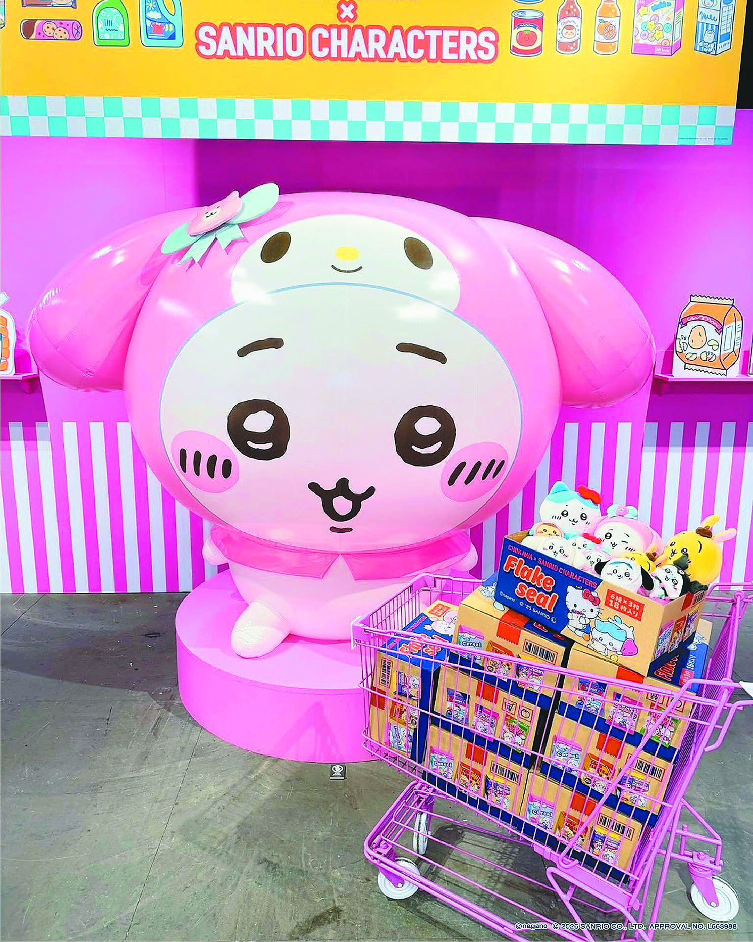 華山快閃店集結人氣IP吉伊卡哇與三麗鷗,以及《庫洛魔法使》。「Chiikawa×Sanrio Characters POP UP SHOP」以超市購物為主題打造桃粉色空間與購物車,以及美式風格招牌燈、穿著美樂蒂服裝的吉伊卡哇巨型氣球,一進店就少女心大噴發。