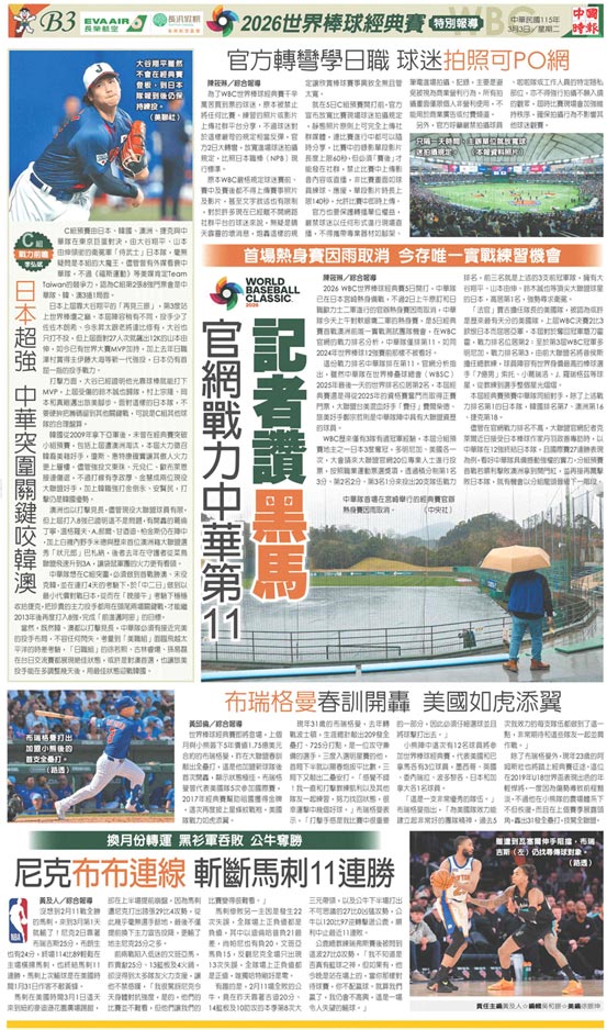 B3 2026世界棒球經典賽特別報導