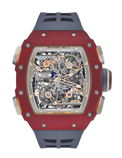 腕表與運動賽事結合,向來別具話題,常見的運動賽事包括賽車、網球、高爾夫球、帆船等,但與足球比賽結合的腕表則十分罕見,Richard Mille這款新作歷時5年研發,引入賽事階段顯示器與機械進球計數器兩大全新複雜功能,充分展現品牌製表科技與工藝研發上的卓越實力。