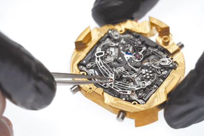 為了打造RM 41-01足球陀飛輪腕表,Richard Mille特別開發全新RM41-01鈦合金機芯,是一款取得專利的陀飛輪飛返計時機芯,並集結了陀飛輪擒縱結構、70小時動力儲存顯示、功能指示器,以及配備中央計時分針和秒針的飛返計時碼表等功能。