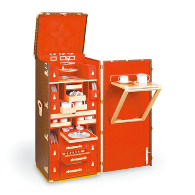 比較愛馬仕和LV工藝展,不難發現兩者的時尚文化和DNA有很大的不同,愛馬仕工藝展透過工藝大師與參觀者的趣味互動,營造歡樂派對的氣氛,而LV工藝展則猶如探訪富豪的奢華宅邸,處處可見LV訂製皮箱、貼滿Monogram皮革的家具、成堆的鱷魚皮包、皮草大衣和高級訂製禮服,現場展出將近1000件展品,為歷年之最,十分浮誇豪氣。