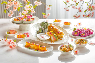 高雄日航酒店配合「高雄櫻花季」的城市氛圍,館內「SERENA全日餐廳」精心打造櫻花主題布置,處處可見粉色花瓣點綴,營造如置身日本賞櫻勝地的浪漫氛圍。推出的櫻花季限定餐點,包含「櫻花海鮮酥派」、「櫻花鰻魚卷壽司」,及櫻花主題甜點等精緻菜色。