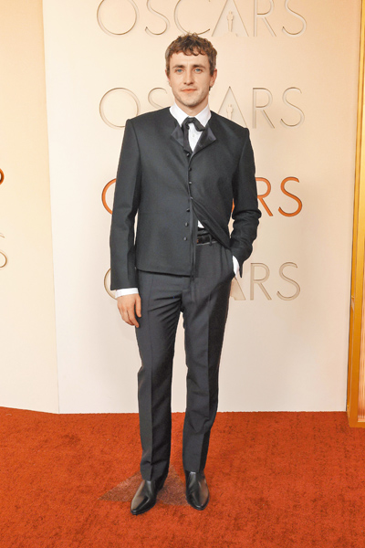 演技派男星佩德羅帕斯卡少見的剃鬍登場,他捨去外套,僅穿香奈兒白色襯衫搭羽毛胸針,在眾多男星當中反倒更顯突出,雖是簡單的白襯衫,但採用合身的立裁,並融入珍珠釦子的奢華元素。《烈愛對決》哈德遜威爾斯穿Balenciaga男裝搭配寶格麗Serpenti系列祖母綠與鑽石胸針和腕表。保羅麥斯卡穿CELINE男裝,領口以繫黑色緞帶的方式取代傳統領帶,同樣別具巧思。