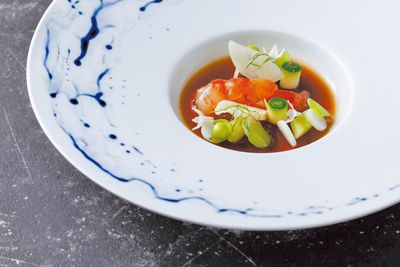 Impromptu此次改裝以「沉穩的即興」為設計主軸,重新規畫入口動線與客席配置,並以環繞主廚料理吧台的空間作為視覺焦點,同時精簡座位數,讓整體空間更為寬敞。料理方面同步推出新菜單,主廚李皞(Paul Lee)將自身成長與旅行經驗轉化為味覺創作,並以食材本身的鮮味建立料理結構,例如以潮汕生醃概念呈現牡丹蝦,或以雞油與辛香料搭配紅喉魚與螢烏賊,展現融合東西風味的料理語彙。
