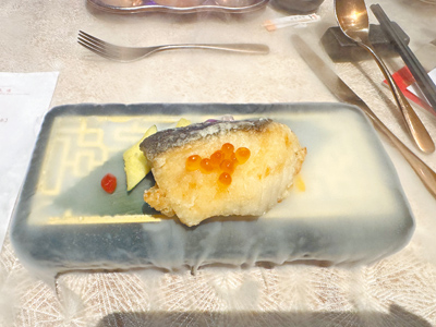 其中「煎封‧海鹽‧白鱈魚」這道菜,形容的是《紅樓夢》書裡女主角之一薛寶釵,為人親和圓融、心思細膩,體態豐滿,大廚以白滑、油脂豐富又具細膩質感的白鱈魚入饌,擺盤亦講究,上桌時可見縷縷輕煙,以此帶出薛寶釵因治熱毒而要服用冷香丸,添加冷豔迷人之感。這道也是張曼娟較喜愛的一道料理,「鱈魚吃起來飽滿滑順,是一道實在的料理,擺盤設計也呼應薛寶釵外冷內熱的人物個性。」