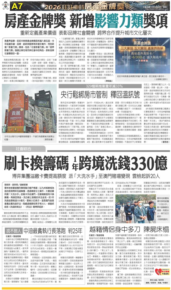 A7 2026旺旺中時房產金牌獎/社會綜合