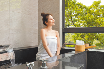 北投老爺酒店的「沐泉療中心」,除可盡情享受北投特有的「白磺溫泉」外,更有烤箱、蒸氣室等設備,泡湯之餘感受北投溫泉風情。四月針對女性旅客推出紓心SPA假期專案,在客房度過靜謐夜晚後,翌日可在PURE歐式餐廳享用半自助早餐,飯店還提供各式精緻飲品與點心,讓賓客享受悠閒午後。
