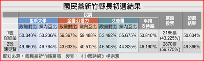 陳見賢、徐欣瑩的提名之爭,早在去年藍委林思銘順利挺過大罷免後便浮上檯面,當時3人均傳出有意參選,經黨中央協調後,僅剩陳、徐相爭,今年2月25日第3次協調會上拍板採三七制,3成黨員投票、7成民調。