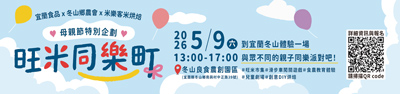 宜蘭米採一年一耕方式耕種,並以雪山山脈水源灌溉,優良品質深受肯定,為讓大眾對在地米食有更近一步認識,宜蘭食品宣布5月9日下午1點至5點於宜蘭冬山良食農創園區舉辦「旺米同樂町」活動,內容相當多元包含旺米市集、滑步車闖關遊戲、食農教育體驗、創意DIY烘焙、兒童劇場,適合帶孩子一同放電、接觸食農體驗。