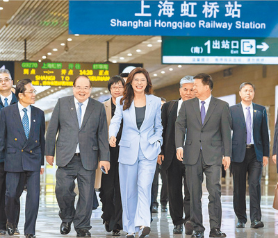 鄭麗文率領的「2026和平之旅」訪問團7日下午1時許抵達上海後,中共中央台辦主任宋濤等人接機,一行人隨即搭乘高鐵前往南京。在高鐵上,鄭麗文與宋濤面對面而坐,宋濤表示,他是奉中共總書記習近平指示,來上海迎接鄭麗文等人。鄭麗文表示感謝,她說,「難得的和平機遇一定要把握」。