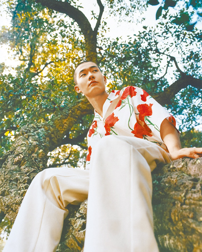 Kenzo重新取材1983年的經典玫瑰印花,將早期的浪漫圖樣轉化為貼近日常的當代輪廓,也為本季春夏時尚打造出流於懷舊與街頭之間的不定性語言。這組形象視覺由創意總監Nigo主導,在自然光影與花園場景之中展開,紅白玫瑰圖騰除了是品牌過往的核心符碼,更是一段關於品牌記憶的延伸故事。從氣球迷你裙、立領短袖上衣,到帶有軍裝語感的深藍外套與丹寧單品,都呈現Kenzo近年逐步建立的風格輪廓,也讓80年代的浪漫重新轉化為今日可穿的都會節奏。