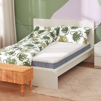 IKEA的VITMASEN獨立筒彈簧床墊上層為3公分厚的乳膠材質,含5個舒適區塊,提供良好的支撐。床墊內含獨立袋裝彈簧,有助空氣流通;由於各彈簧獨立運作受力,即使睡覺時經常翻身,也不會干擾身邊床伴。