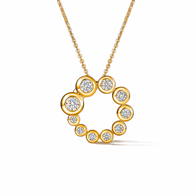 此系列更匯聚時尚百搭的鑽飾,琳琅滿目的鑽飾採用可變式設計,系列中的鑽石耳環以按大小排列的K金和鑽石,於耳際勾勒出優雅璀璨的圓形,亦可從耳針卸下穿孔設計,使其變化成垂墜耳環;鑽石戒指以完美車工鑽石圍繞玉指,如銀河中悄然運行的恆星般光芒耀目;鑽石項鍊和手鍊等全新之作亦以立體的金球映襯閃亮鑽石。