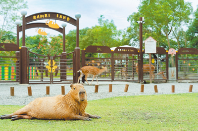 如果把行程再往外延伸,車程約20分鐘的斑比山丘,則是另一種截然不同的療癒風景。梅花鹿自在穿梭,小水豚慵懶親人,還有模樣討喜的迷你驢,讓人很難不在這裡多停留一會。近期園區也推出以孩子為主角的「小小畫家‧動物藝廊計畫」,讓旅行不只是觀看與拍照,也多了一點參與和創作的樂趣。相關訊息可上官網或打專線:(03)9603-808。