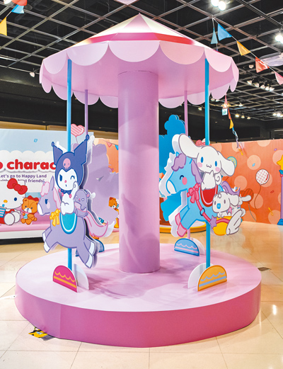 Hello Kitty、酷洛米、大耳狗等三麗鷗人氣明星齊聚一堂,繽紛遊樂園主題限定店打造5大打卡點,業者首推色彩繽紛的午茶時光咖啡杯,民眾可進入咖啡杯中與角色們合照,旋轉木馬、彩虹摩天飛車等造景也結合遊樂園元素。現場引進近40款新品,包含可晃動的搖搖壓克力鑰匙圈、15款的超Q迷你DIY組合小吊飾、短版T恤等,可於6月8日前至統一時代百貨高雄店8樓時代會館購買。