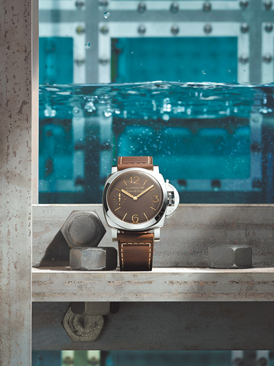 PAM01731腕表搭載P.6000手動上鍊機芯,備有三日動力儲存,磨砂精鋼表殼,防水深度可達300米,表盤以菸草色呈現,9點鐘方向設有小秒盤,是專為追求大膽創新的佩戴者所打造。