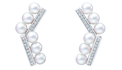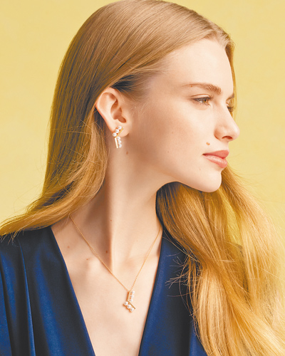 新款balance step neo系列耳環以兩組線條上下交錯呈現,風格延續2020年登場時的不對稱美學,再透過兩條交錯的珠串達到平衡,勾勒出如樂譜般的流轉韻律,展現豐沛的生命力。
