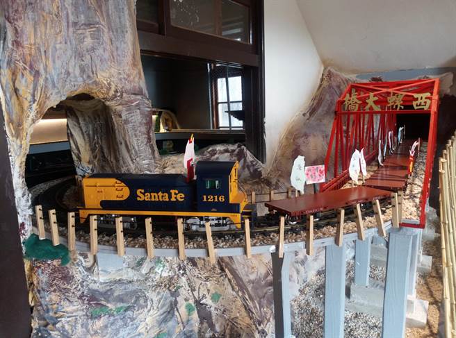 不經琢磨的原木門庭與牆圍,粗獷不失細緻,入門的鮮紅西螺大橋,彰顯著雲林縣,小火車和日式餐廳的旋轉壽司一樣,載著魚板等鍋物任客挑選,最具巧思的是,載著鍋物繞行全台的小火車,中央山脈便是一面高牆,得細細品賞才能發覺箇中端倪,非常獨特。