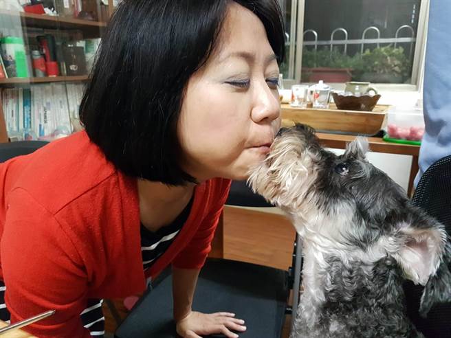 「來親一個」,莉娜抬頭與女主人「胖桑」揪揪嘴,伸舌頭、激情喇舌,「胖桑」說,莉娜是她狗寶貝,「互相交流」感情更好;「握手,Give me five!」莉娜完成主人指定動作,像握手、坐下、趴下等,與主人來個「成功擊掌」,左右腳側停坐、主人拱手跳圈圈,都難不倒牠,大家讚嘆「太了不起了!」。