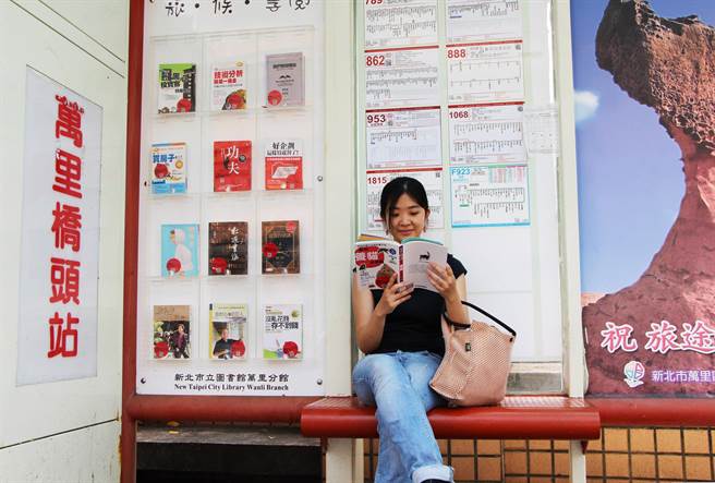 為鼓勵地方居民親近閱讀,新北市立圖書館萬里分館在候車亭設置書香櫥窗,讓候車民眾在等車空檔看看書,吸引不少候車乘客翻閱,如果喜歡書籍內容,不但可以把書帶上車看,就算拿回家也沒問題!