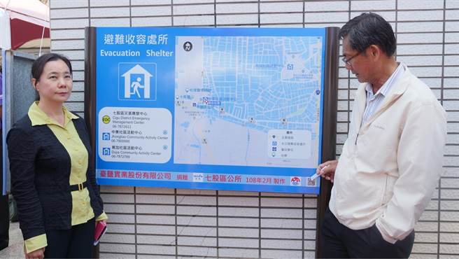台南市災害防救辦公室參事侯俊彥指出,上月有嘉華鞋業捐贈12英吋的抽水機1台,這次又有台鹽捐贈3面防災避難看板,可見在地企業回饋鄉里的傭心;台南市長黃偉哲在防汛會議提到,要注意易淹水區的疏散撤離作業,以免因太晚進行人員撤離增加後續撤離工作的困難度及危險性,防災避難看板啟用有協助效果。