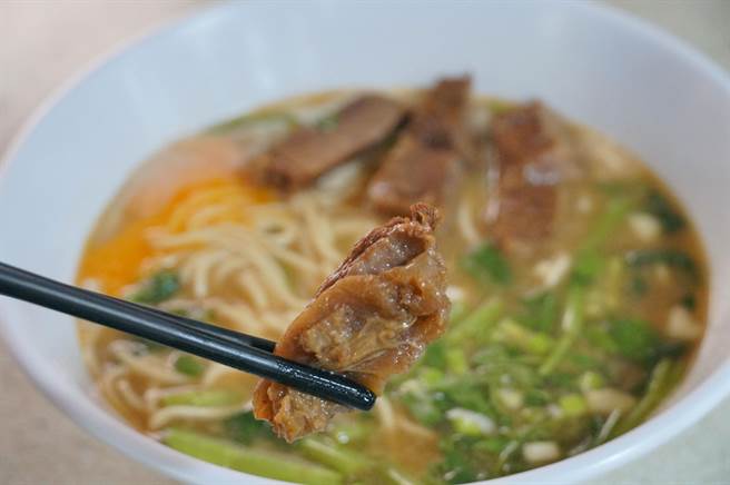店內以牛肉為基底的牛肉麵有多種,但最為人稱頌的就是用牛骨熬的湯底,完全不添加任何味精與香料,經過10幾個小時熬製,牛骨都熬到成碎片、湯汁呈乳白色,牛肉則選用澳洲半筋半肉,經由紅燒墩煮,口感有咬勁而不柴,與湯頭混合帶點微辣,如果覺得不夠辣,店內還有特調辣醬,還特別貼上「我很很很很辣」愛辣的人可以挑戰看看。