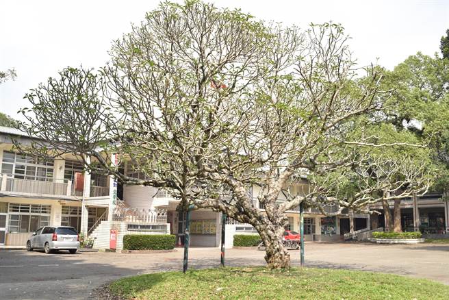 樹齡超過百年的緬梔樹在國內相當罕見,因它的位置在靠近教室的中庭,小朋友奔跑嬉戲經常會穿越過樹下,在師長的引導下,小朋友將緬梔樹當成爺爺來看待,幾年前因棲地環境不佳,緬梔樹過了冬季不開花、不發芽,學校向福田樹木保育基金會申請醫治,樹醫師診治後,拆除花台、除掉柏油,換上新土並定期施肥,師生還曾圍著老樹寫卡片祈福,盼望老樹恢復生機,繼續陪伴下一個百年。