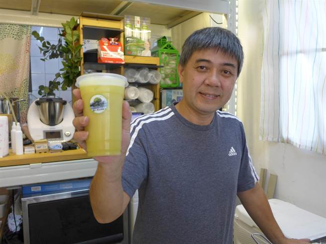 拿起1顆檸檬,林東彥說,檸檬的農藥用水也很難洗淨,為保證不傷身體,特別挑選無毒栽種,且自家果汁全使用最簡單方式製作,以「金桔檸檬」為例,消費者吃到的只有檸檬、金桔與蔗糖,且無毒檢驗證明都看得到。