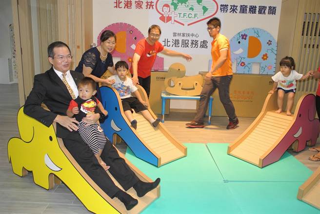 家扶北港服務處為推廣閱讀成立「閱讀苗圃」,台東友傑自動化機械公司得知小朋友需要遊樂設施,特別向雲林悠紙生活館訂購2隻瓦楞紙製作的大象溜滑梯「溜溜象」相贈,12日小朋友在「溜溜象」陪伴下,享受更多元閱讀樂趣。