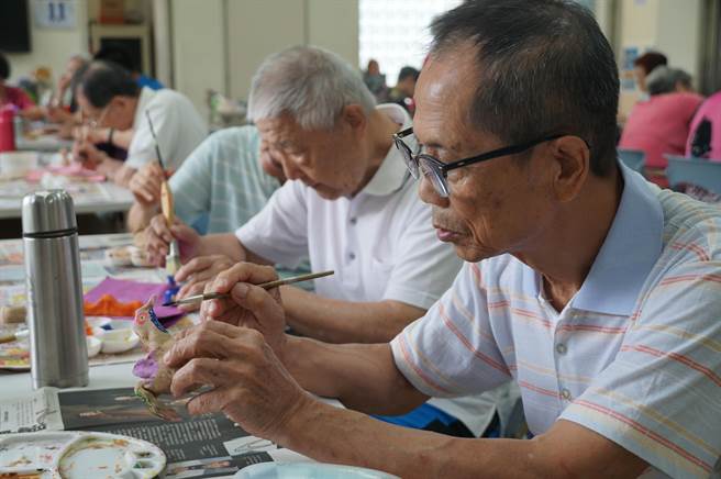 空氣中瀰漫著撲鼻的顏料味,長輩們在黎明里社區關懷據點教室內,正為自己的陶土作品上色,眼神專注,問他或她那是什麼?微微靦腆一笑的長輩們,趣味的介紹自己的作品,謙虛的說做不好,旁人還加油添醋,為旁人作品添加意義,總惹得會心一笑,長輩們都很開心,直嚷著好玩,下次還要再來。