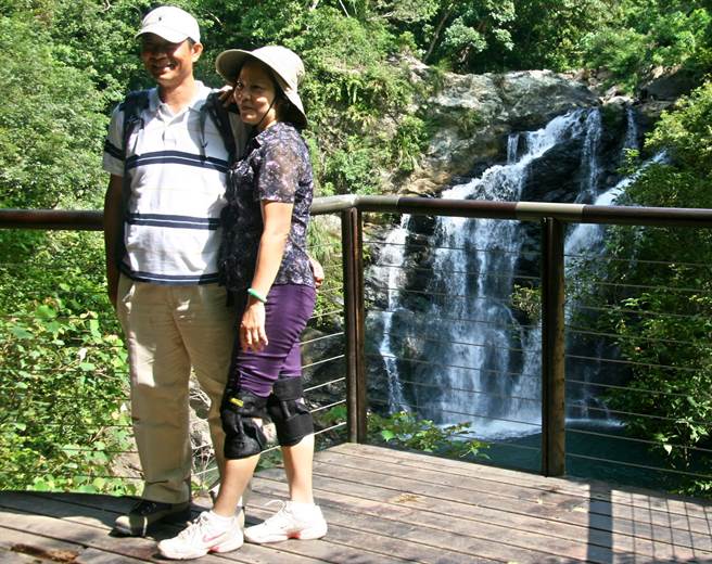 雙流瀑布位於步道終點,是園內最著名景點,形如扇面,水流奔騰而下,水勢磅礡,氣勢不凡,因園區水氣充足,終年水流不斷,流汗健行後到此享受充沛的陰離子洗滌,更讓人覺得心曠神怡。