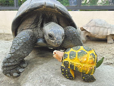 隨著萬聖節來臨,動物園發揮巧手,將西洋南瓜雕出搞怪表情,並藏入麵包蟲,讓狐獴愛不釋手,頻用利爪挖找美食,展現自然天性;而園區志工利用東洋南瓜外皮紋路及色澤,雕出幾可亂真的烏龜造型,並結合地瓜和秋葵設計成烏龜的頭和尾巴,象龜看到美味蔬果,立刻品嘗。