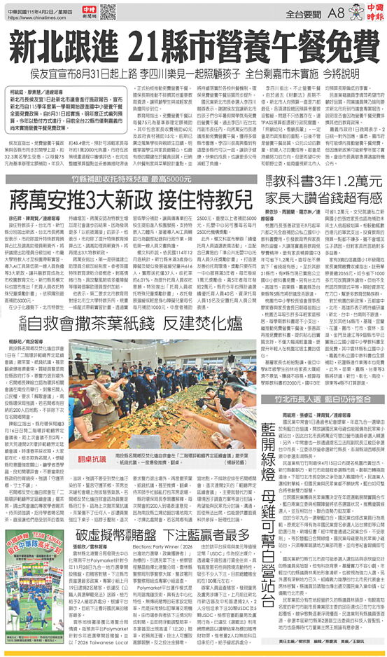 AD 破虛擬幣選舉賭盤 下注藍贏者最多 國中教科書3年1.2萬元 家長大讚省錢超有感 藍開綠燈 母雞可幫白營站台 蔣萬安推3大新政 接住特教兒 新北跟進 21縣市營養午餐免費 名間自救會撒茶葉紙錢 反建焚化爐