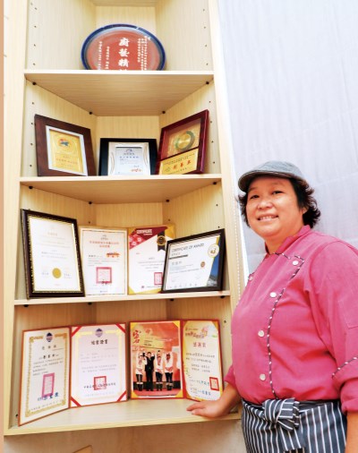 為了爭一口氣,劉雪玲和開大卡車的丈夫經營了運輸公司,她自己也考上所有職業大客車的執照。那時夫妻倆不怕辛苦、同心一志,常常凌晨一起出門,帶著孩子跟著上車,那幾年生意很好、事業可成。可是好景不常,丈夫受到壞朋友誘惑,沉迷賭博、喝酒,還對她動粗。那時父親已往生、疼愛她的婆婆也離世,吞忍到三個孩子都上國中,劉雪玲決定帶著孩子離開夫家搬回娘家,從此默默承受丈夫一次次酒後來家裡鬧事。 聽長輩的建議,她把孩子送到軍校、劇校就讀,自己除了考上有保障的公職、在公立育幼園當廚娘,一到假日就到辦桌的地方打工,這麼獨自奮鬥努力賺錢過了十幾年的失婚生活。沒想到,二○一○年一場客家筵席料理比賽,讓她的人生逆轉。 雖然不知道廚藝競賽到底是怎麼回事,但她想,做菜是自己最擅長的,她只要負責做就好了,至於說菜和面對評審是其他夥伴的事,所以接受朋友邀約參加。結果,她們第一次參賽就得到了非職業組冠軍,這又造成轟動。