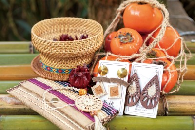 隔日一早恰好是周末,周六、日才有的「麻必浩部落市集」十分有趣,攤位都是擺在自家門前,等待外地來的遊客上門。這裡的攤位大多展示以苧麻線製作的物品,桌墊、揹籃、提袋等物品,實用又具紀念意義。像是「薆繞原創設計工作室」,都是張爸與張媽的手工藝,如耳環、手鍊和袋包,耳環以深淺不同的苧麻線,結合了銅料和木材等,造型、款式獨一無二,也有染上不同色彩或是條紋的小包和置物籃可供購買。 部落的農特產品隨著季節不同更替,自家農園栽種的甜柿、百香果、野菜等,擺放在各自精心設計的攤位上,都使用苧麻繩網包裝,漂亮又環保,不知不覺就讓大家買好買滿,豐收賦歸。