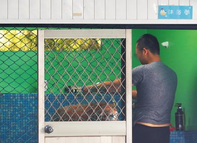 許師姐還透露,妙狗泳池業者為了不讓鄰居偷拍蒐證,竟在園區與宮廟相連的鐵皮上鋪設帆布,底下再用盆栽擋住,但如此一來,不僅遮住了視線,也擋住了逃生口,恐有危及公安的疑慮。 「我們有向一九二二(免付費傳染病諮詢專線)反映,但一九二二要我們打給一九九九(新北市政府服務專線),一九九九又說直接打給警察局。」許師姐無奈地說,相關單位紛紛甩鍋不處理,實在讓人心灰意冷,「這種事情不應該被漠視姑息,更不能等到疫情爆發後才去重視。」 究竟寵物游泳池在三級警戒期間是否可以營業?新北市衛生局強調,寵物游泳池不在三級警戒的「開放範圍」。本刊調查,新北市相關單位近日確實多次接獲檢舉,指稱妙狗泳池有人群聚,新店警方曾分別在七月三日、七月十一日前往查看,雖然看見有狗狗在游泳,但園區內未超過十人,且在場人士均有配戴口罩且保持安全距離,並無違規。 七月二十八日,新北市經濟發展局也根據民眾檢舉,派員前往稽查妙狗泳池是否非法營業,現場查證發現,業者並未辦理「商業登記」,後續將會提報給國稅局,若業者每月銷售額達標,恐涉違反《商業登記法》第三十條,最重可罰五萬元。 占地約兩百坪的妙狗泳池,共有淺池和深池兩大區,淺池適合中、小型犬(十五公斤以下)或初學游泳的狗,深池則適合大型犬(十五公斤以上)或進行復健的狗。 根據妙狗泳池「中、小型犬入園費三百元,大型犬為五百元,每個人的入園費則為一百元」的消費標準,夏天旺季若每天平均來十個人和五隻狗,每天營收為二千五百元至三千五百元。